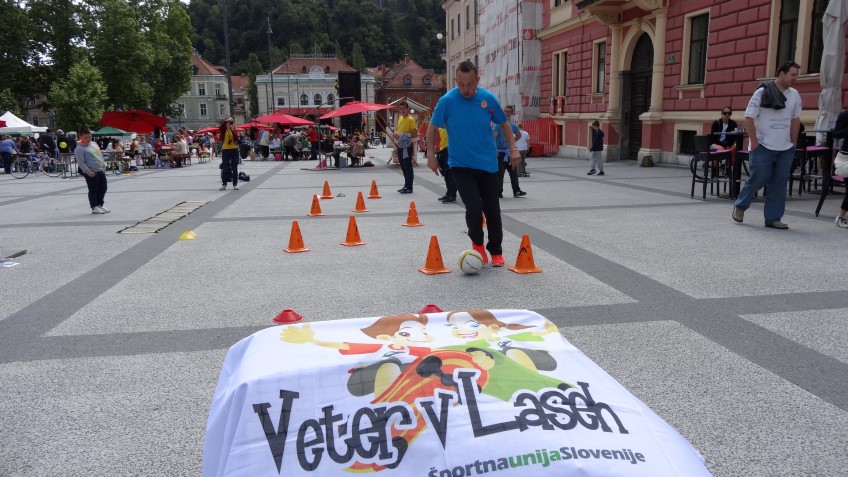 Ekipa Veter v laseh je v sredo dopoldan, 27.5.2015, postavila nogometni izziv, ki je bil dobro obiskan. Mladi vseh starosti so se preizkusili v obvladovanju nogometne žoge in se izvrstno izkazali. Vsakemu, ki je izvedel poligon Veter v laseh, smo podarili zapestnico našega projekta. Na festivalu Igraj se z mano je bil prisoten tudi naš ambasador Zlatko, ki je pokazal kar zavidljivo znanje nogometa.